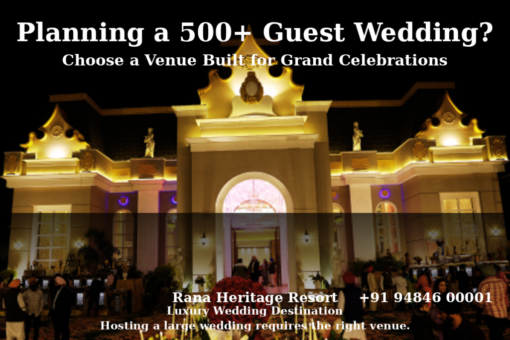 Venues like Rana Heritage Resort, known for hosting grand celebrations, are designed to handle large-scale weddings with ease. From spacious event areas to efficient guest management systems, a well-equipped wedding resort can transform a large wedding into a seamless and memorable experience.